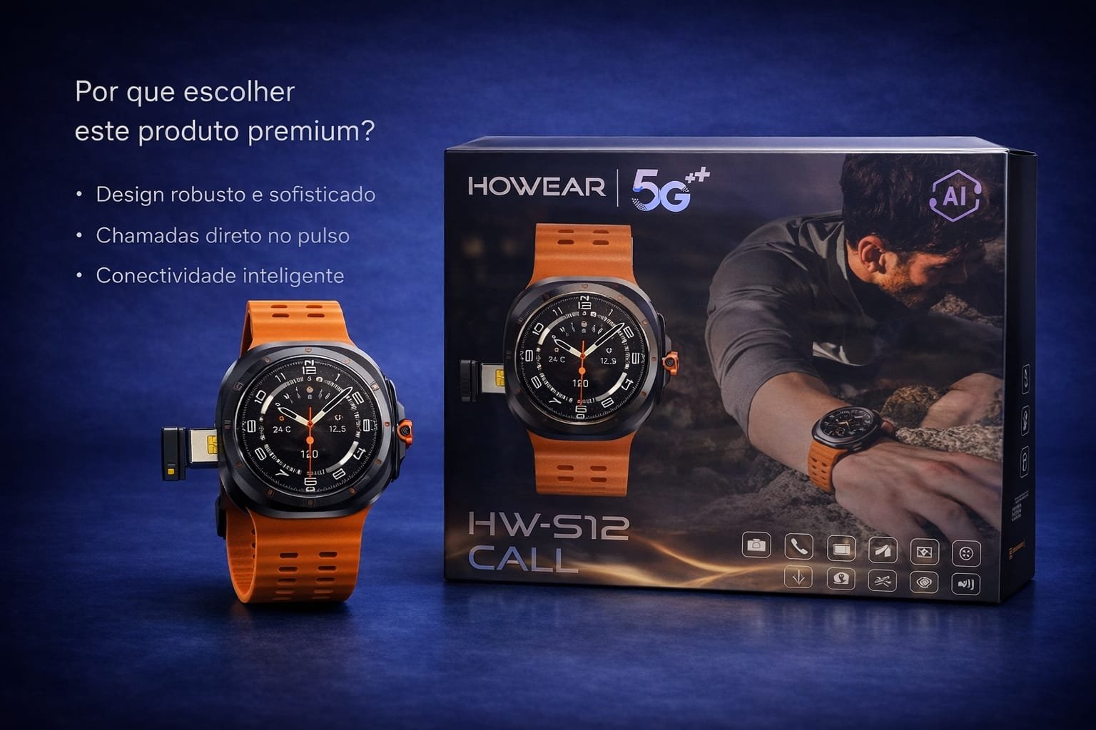 O HOWEAR HW-S12 Call é um smartwatch pensado para quem busca design robusto, conectividade inteligente e recursos completos para o dia a dia.